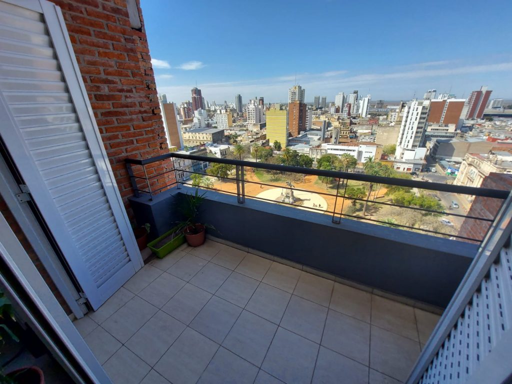 Departamento de dos habitaciones con placares una con baño en suite. Living-comedor amplio con balcón al frente con vista a la plaza, cocina pasillo, lavadero cubierto incorporado a la cocina, baño completo, dormitorio con placard con vista al frente y contra frente. Cochera cubierta.