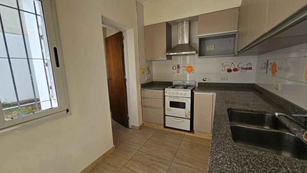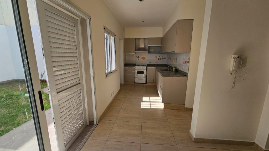 Planta baja compuesta por estar-comedor, cocina, habitación/escritorio, baño, garage y patio con asador.