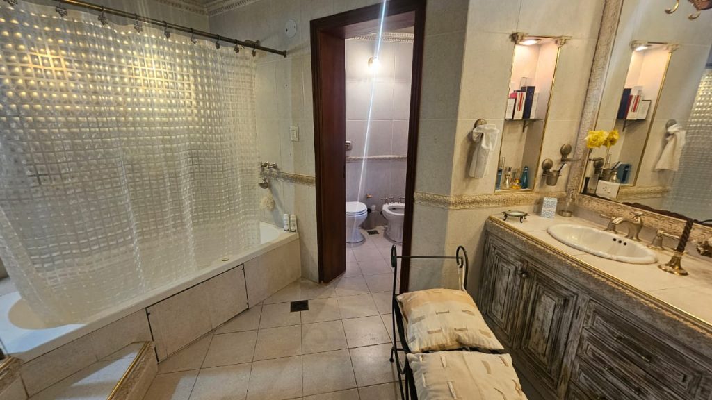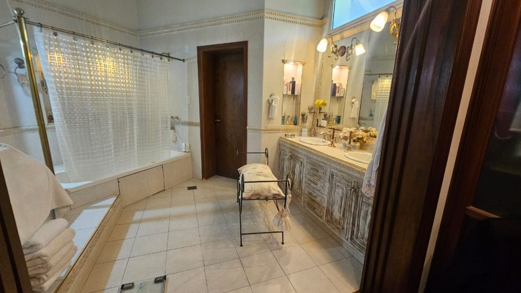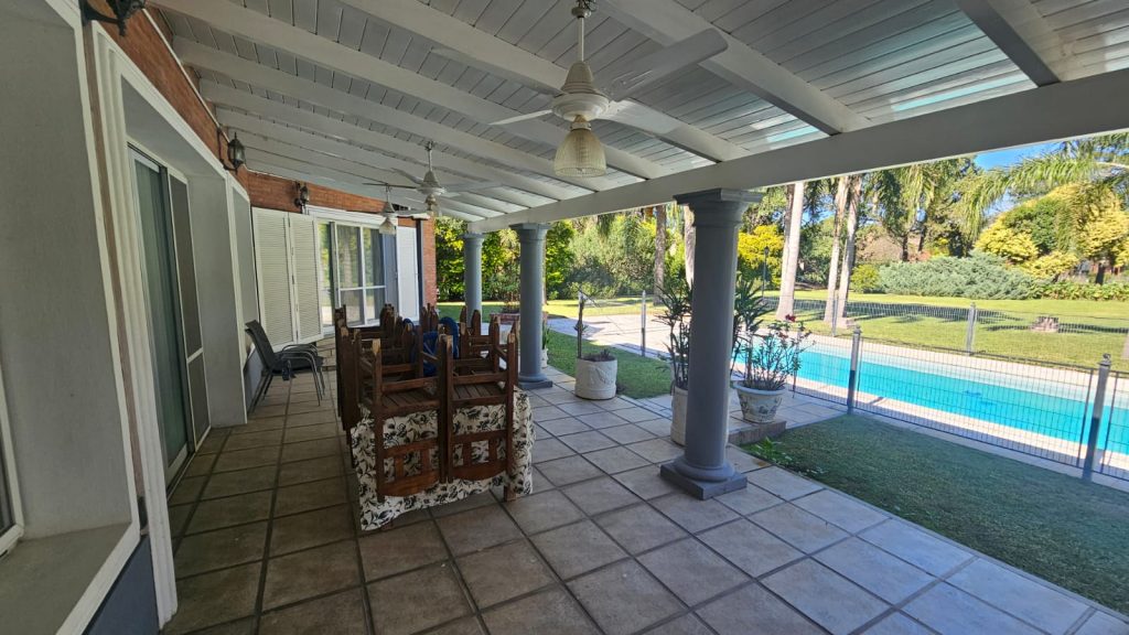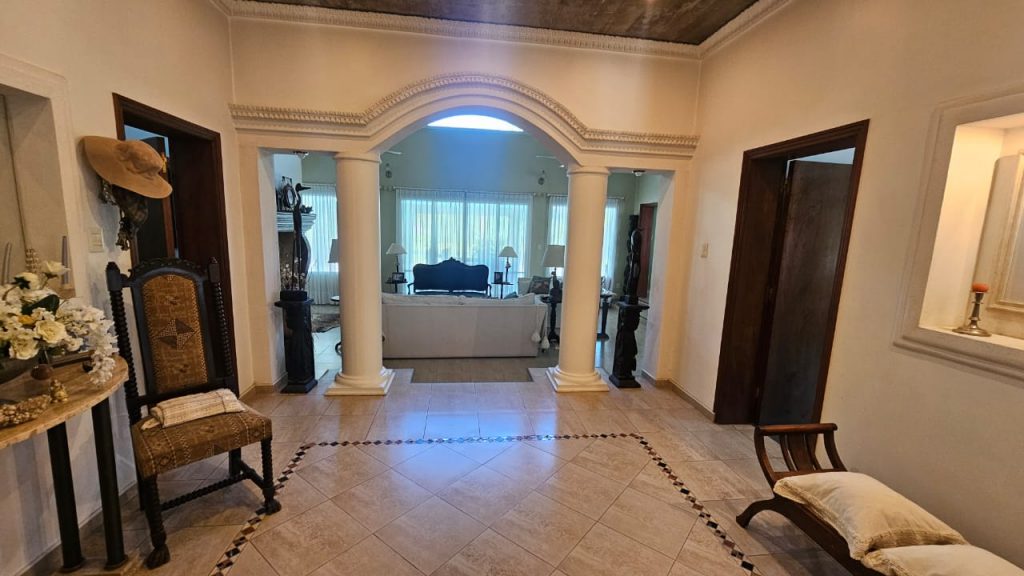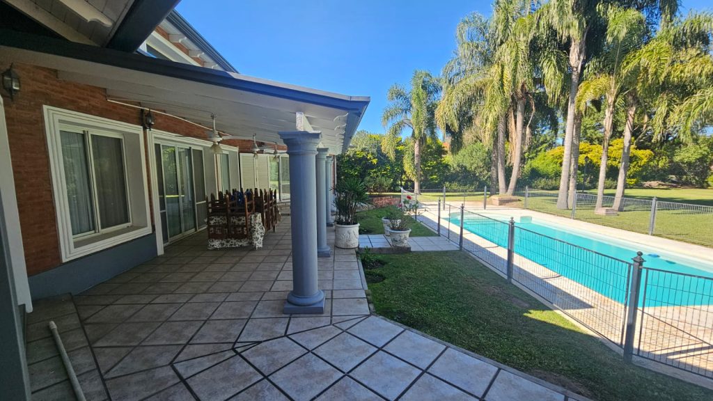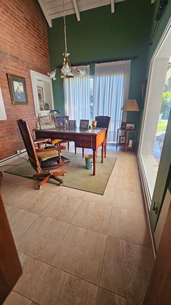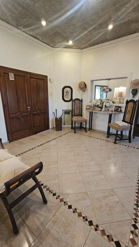 Recepción y un amplio living principal de doble altura, coronado por un hermoso hogar a leña, crean un ambiente de calidez y elegancia. La cocina, de excelente distribución, se integra con un comedor espacioso, ideal para disfrutar en familia o con amigos. Tres cómodos dormitorios, uno con antebaño, baño y vestidor de generosas dimensiones, sala de gym y escritorio. Galería cerrada equipada con asador y horno, baño y dos depósitos de guardado, lavadero independiente y otro baño completo.