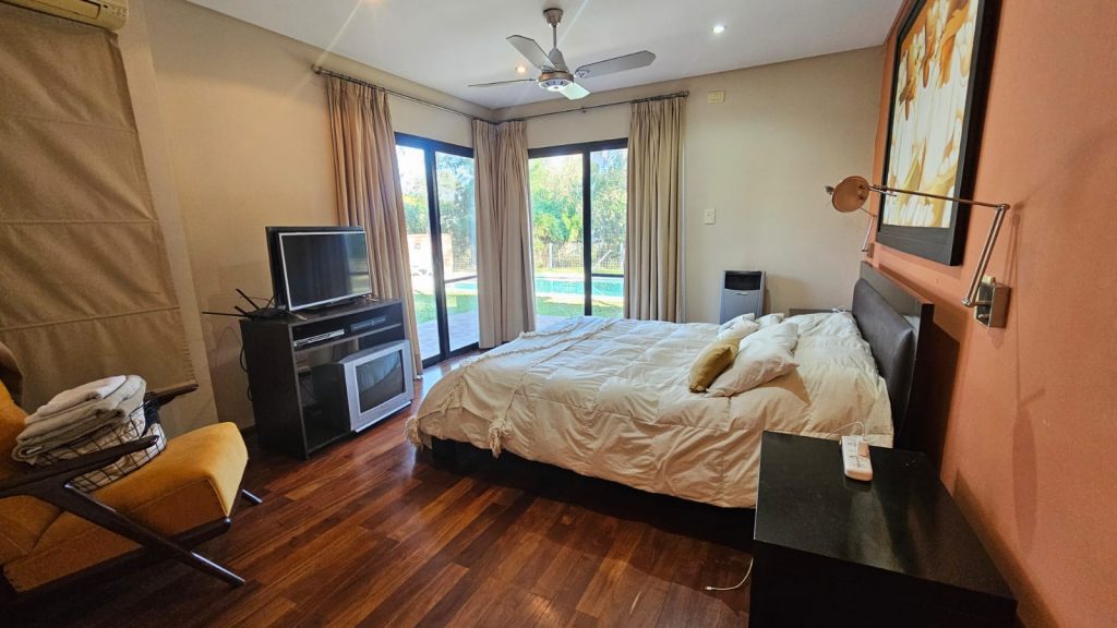 CASA DESARROLLADA EN PLANTA BAJA, INGRESO PRINCIPAL POR ESTAR-COMEDOR, COCINA SEMI INTEGRADA AL ESTAR – COMEDOR CON BARRA DESAYUNADORA. TRES AMPLIOS Y LUMINOSOS DORMITORIOS, UNO CON VESTIDOR, ANTEBAÑO Y BAÑO EN SUITE CON BAÑERA.