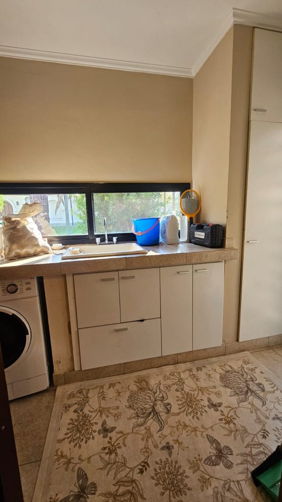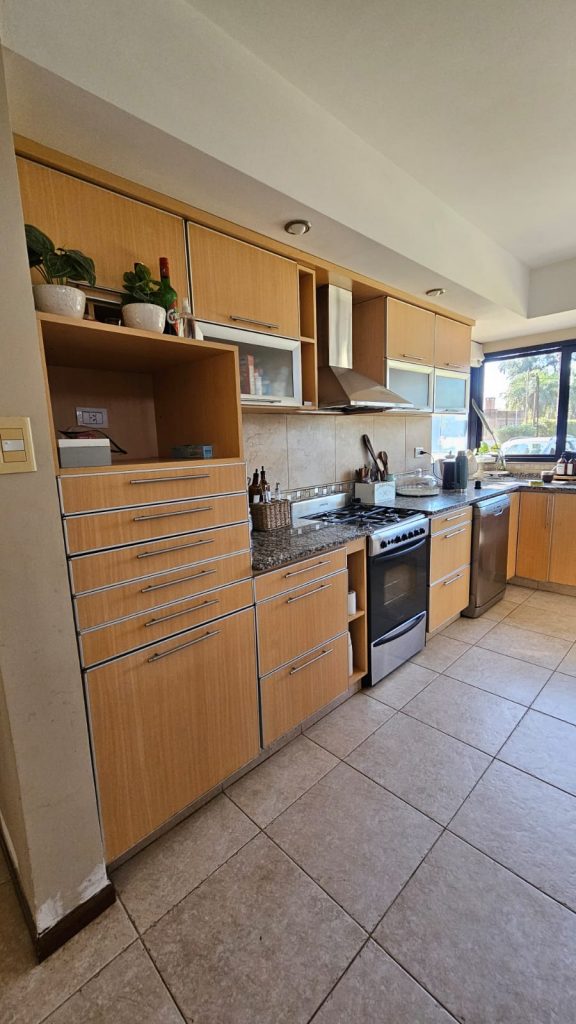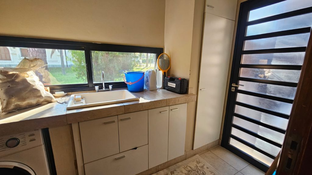 GALERIA CON ASADOR, MESADA EN L CON PILETA DE COCINA. AREA DE LAVADO DE ROPA, PATIO CON PARQUET Y PISCINA.