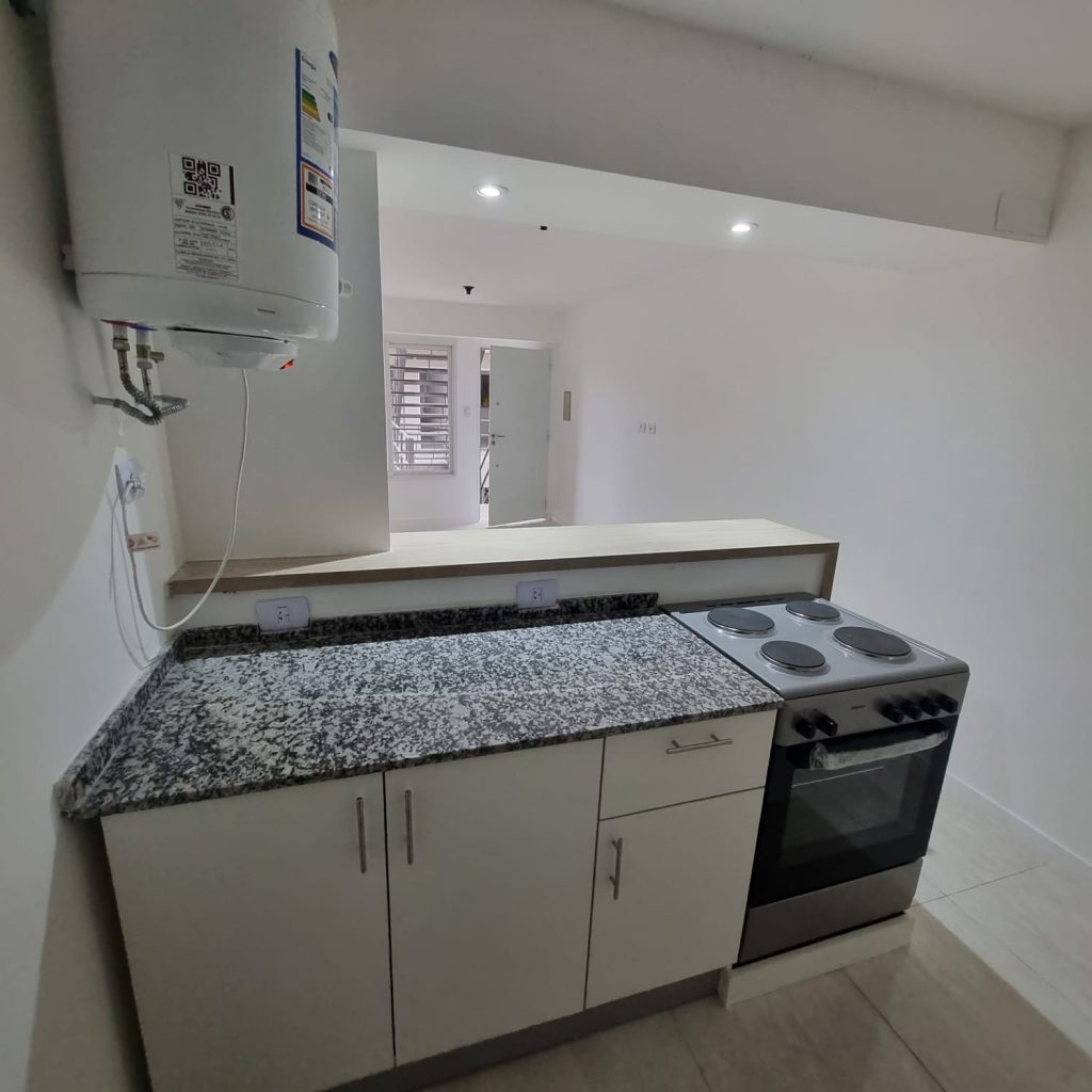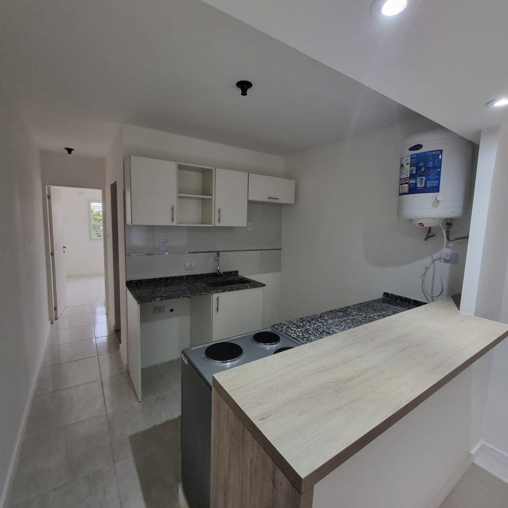 Excelente Departamento a Estrenar: Un dormitorio con placar e interior completo, Living cocina comedor, separado con una barra, lavadero cubierto incorporado y cochera descubierta. Doble vidriado en ventanas para climatización inteligente y optimizar la insonorización.-