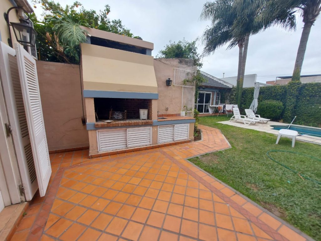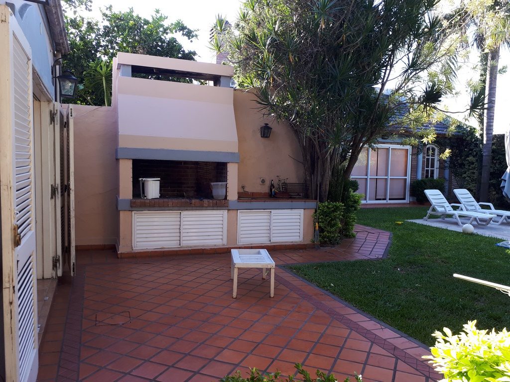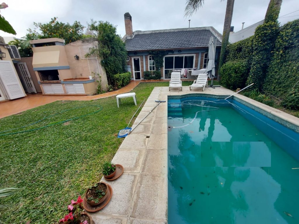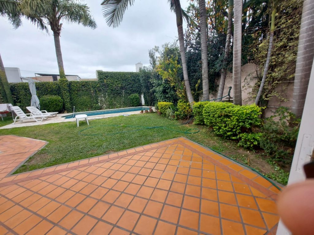 Con cinco dormitorios pasantes, cochera para 2 autos, amplio living comedor, cocina comedor con construcción moderna, 2 baños instalados completos, patio con asador galería Descubierta jardín, piscina amplia con solarim. Amplio quincho con asador, habitación y baño de servio con sauna.-
