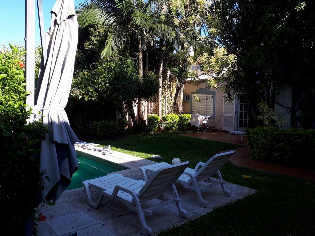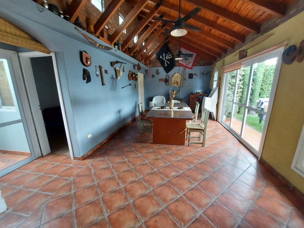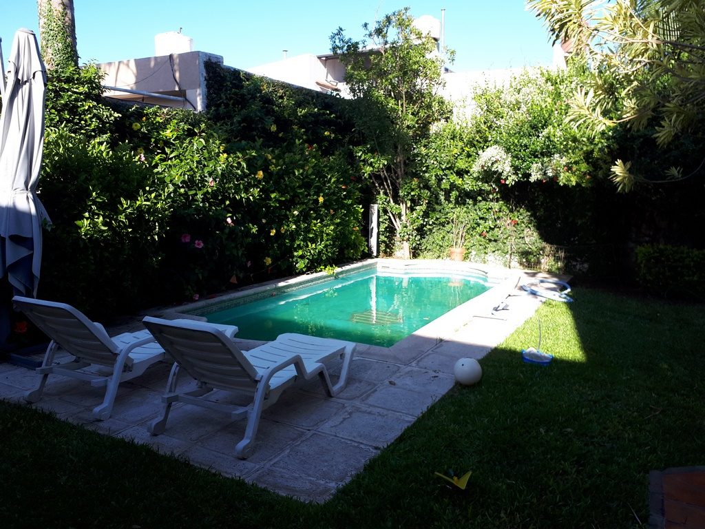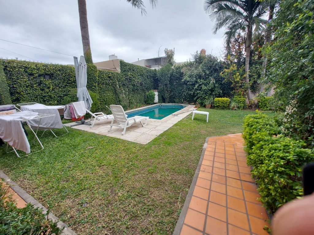 Con cinco dormitorios pasantes, cochera para 2 autos, amplio living comedor, cocina comedor con construcción moderna, 2 baños instalados completos, patio con asador galería Descubierta jardín, piscina amplia con solarim. Amplio quincho con asador, habitación y baño de servio con sauna.-