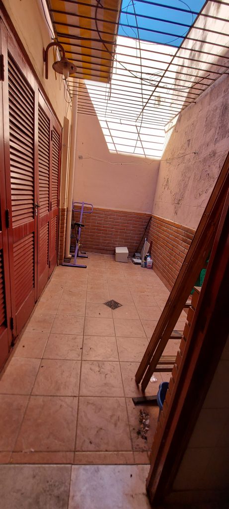 Distribución: recibidor, seis consultorios, dos baños, cocina, lavadero y patio seco con rejas.