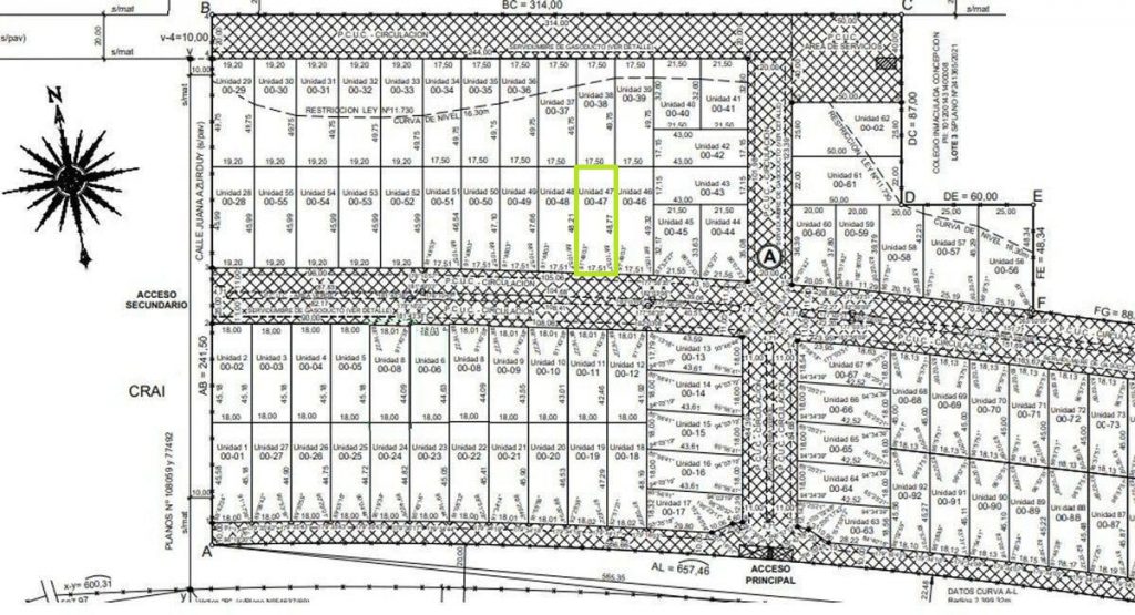 Lore 47, terreno de 17.50 mts de frente por 48.77 mts de fondo.