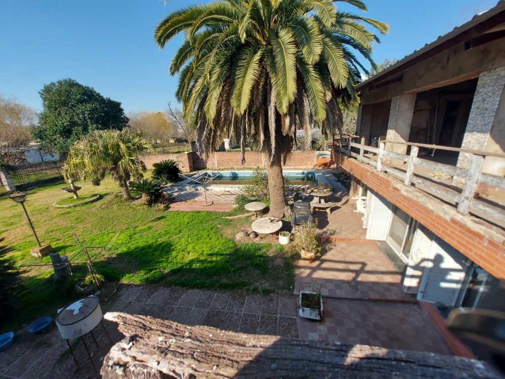 Sobre cinco lotes, amplia y luminosa casa de dos dormitorios, dos baños, living-comedor amplio, cocina-comedor diario, dos quincho con asador uno cerrado, gran parque y pileta, sótano para sala de maquina y baño externo