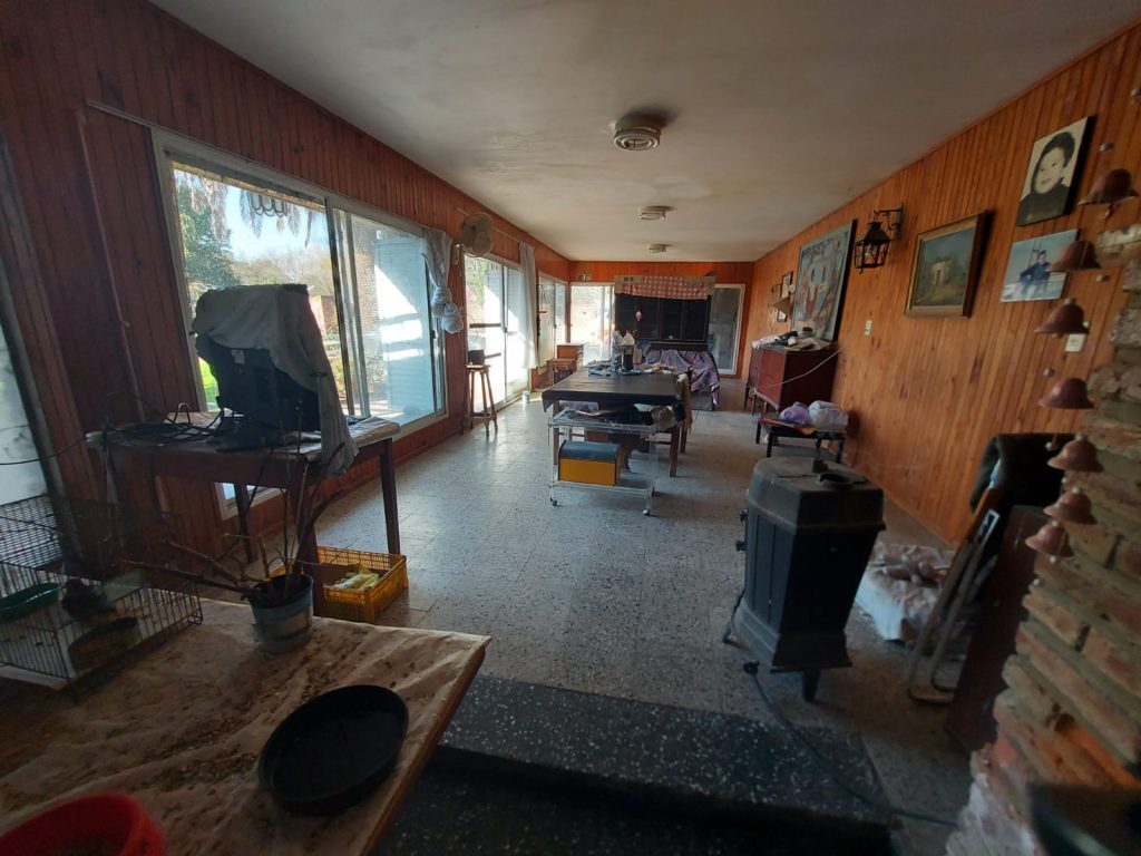 Sobre cinco lotes, amplia y luminosa casa de dos dormitorios, dos baños, living-comedor amplio, cocina-comedor diario, dos quincho con asador uno cerrado, gran parque y pileta, sótano para sala de maquina y baño externo